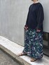 スカート見えの花柄パンツ。黒に合わせて大人っほく。