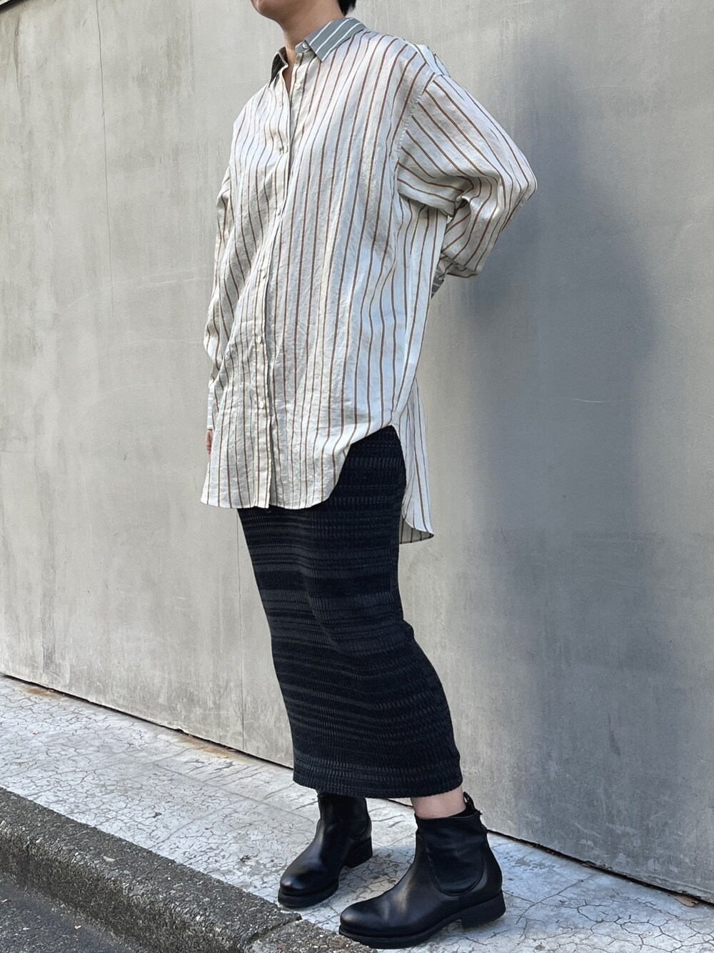 タイトなスカートにはオーバーサイズ気味のシャツを合わせて体型カバー♪