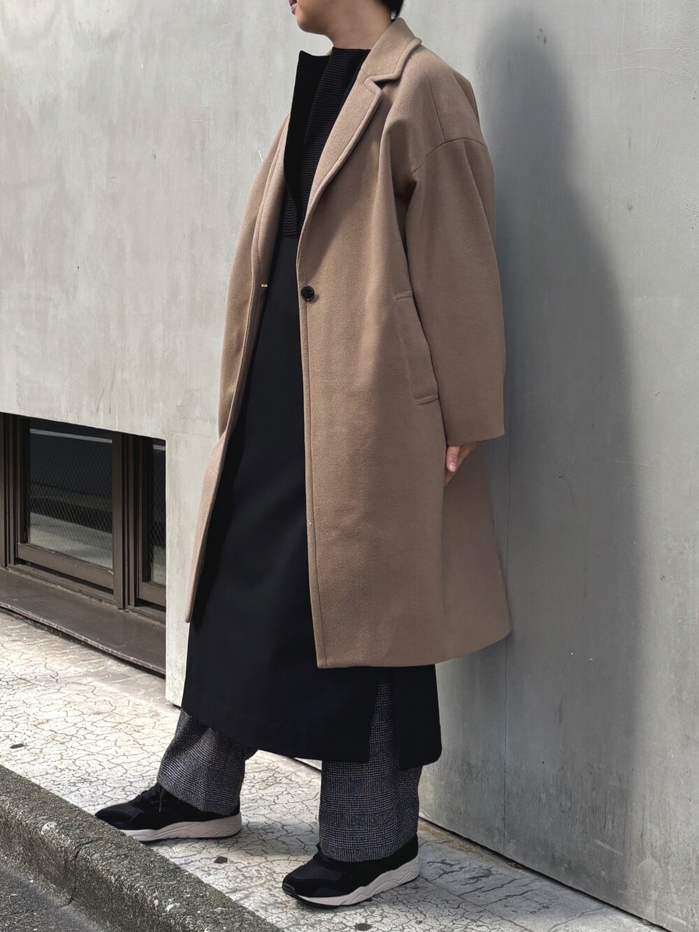 munich05(Munich)のチェスターコート「マイクロシープダブルジャージ ワイドチェスターコート」を使ったコーディネート