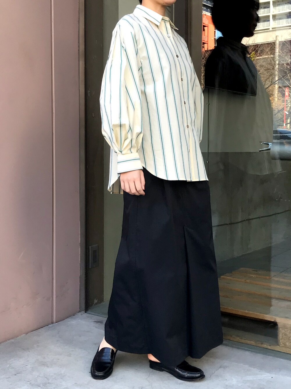 y(Munich)のシャツ/ブラウス「60sタイプライターストライプタックスリーブシャツ」を使ったコーディネート