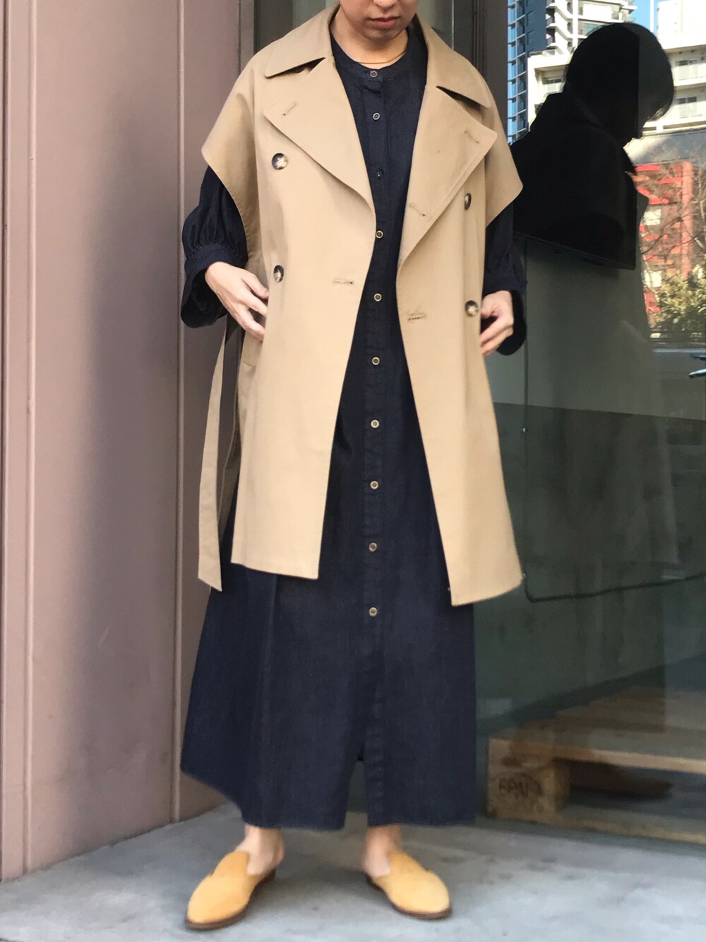 y(Munich)のその他アウター「マイクロピーチコットンツイルトレンチジレ」を使ったコーディネート
