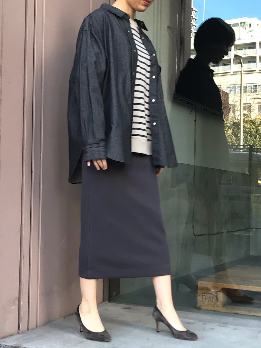 y(Munich)のシャツ/ブラウス「4ozライトデニム バックスリットシャツブラウス」を使ったコーディネート