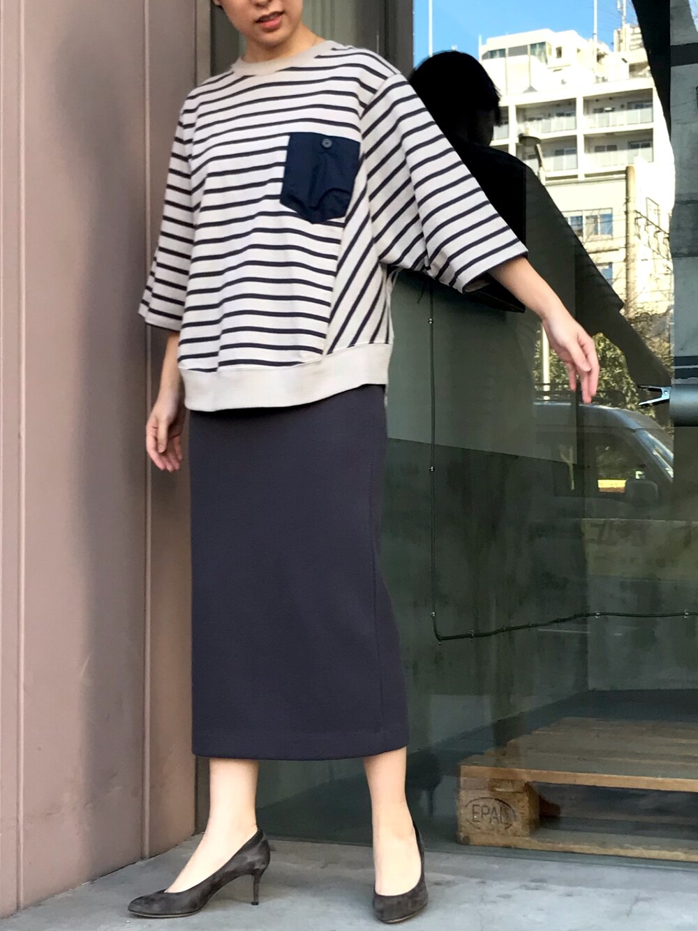 ゆったりシルエットが可愛い裏毛のトップス。上がカジュアルなので下はキレイめにまとめました⭐️