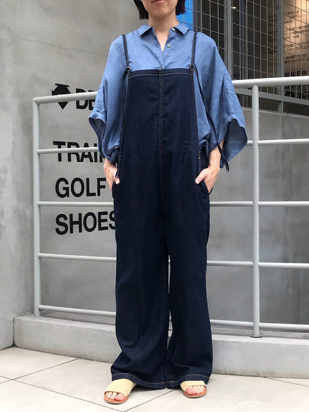 デニムサロペット×ゆるめのブラウスで大人カジュアルなコーディネート♪