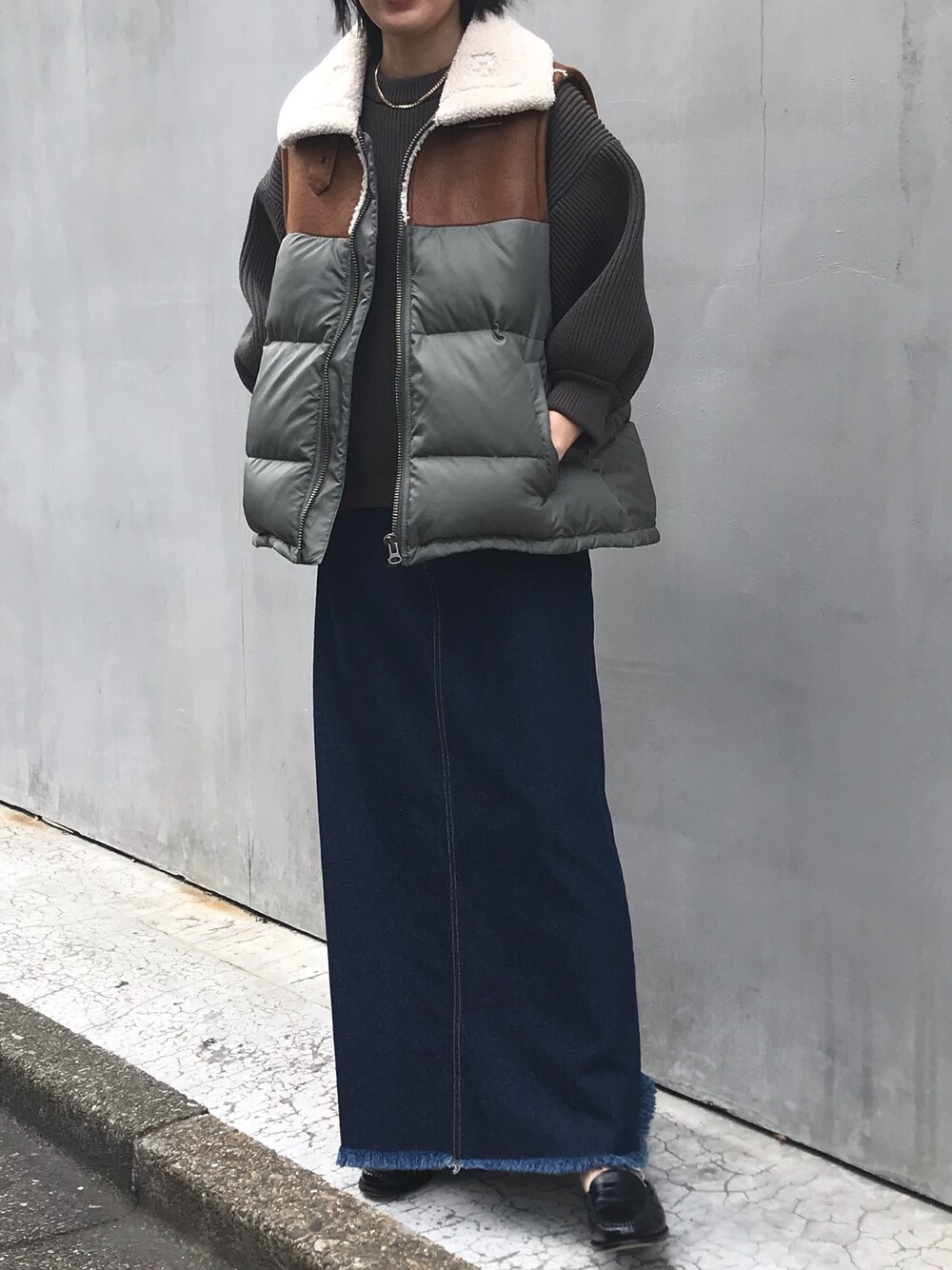 カジュアルなダウンベスト ボアがついててかわいいです🐻
