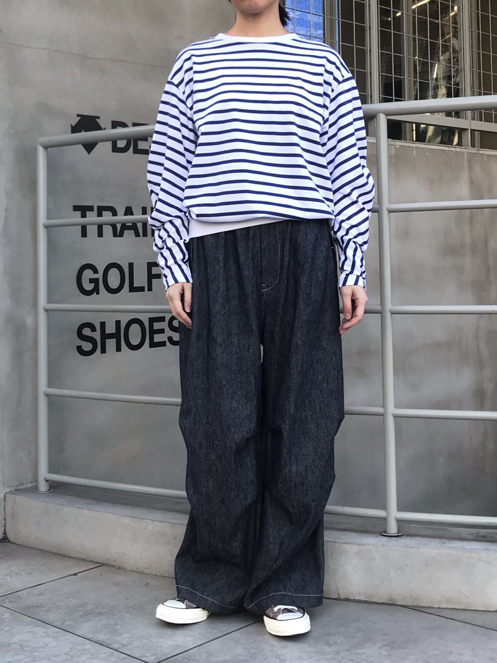 ラフでカジュアルに◎ トップスもパンツも実はディテールが凝っていて立体的なシルエットなのがポイント💡 シンプルながら遊び心のあるスタイルです🐬