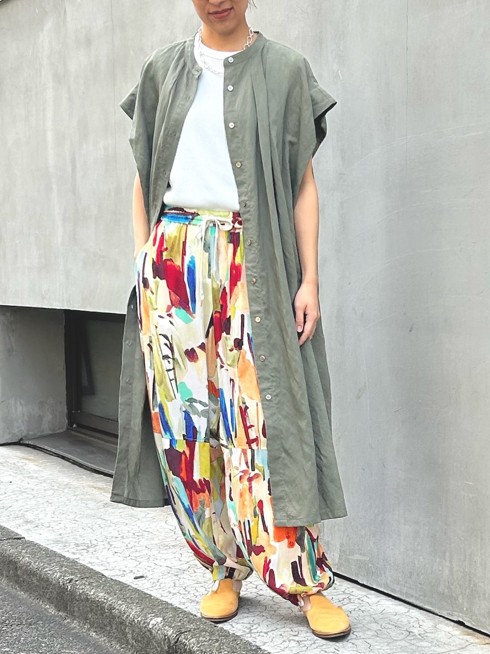 カラフルな柄パンツがアクセント🌟