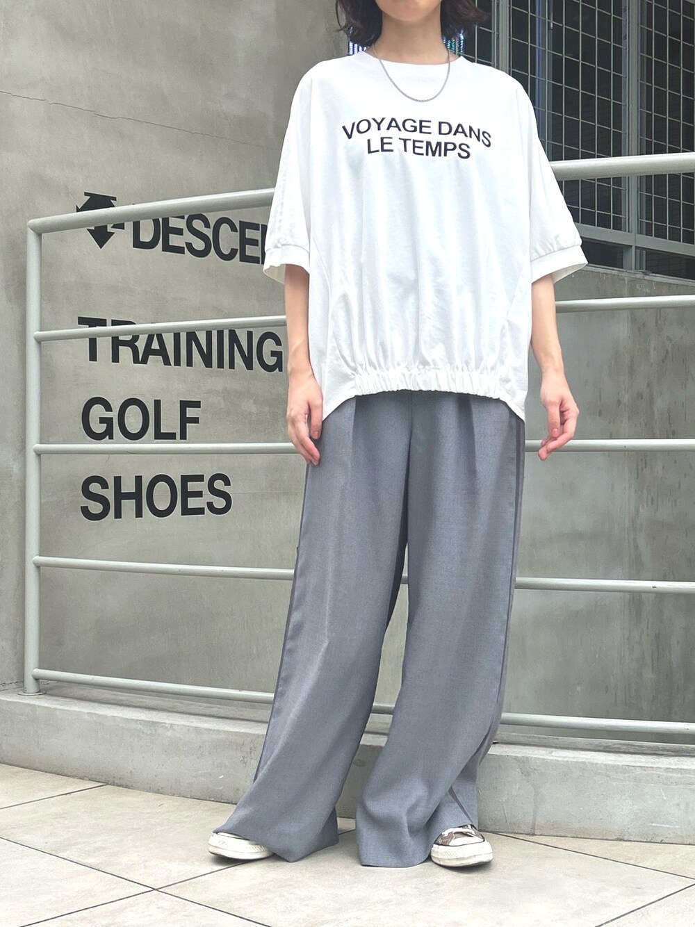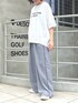 ロゴT×ラインパンツ パンツはウール見えする上品な素材なのでカジュアルすぎない大人のスポーティstyleにきまります◎