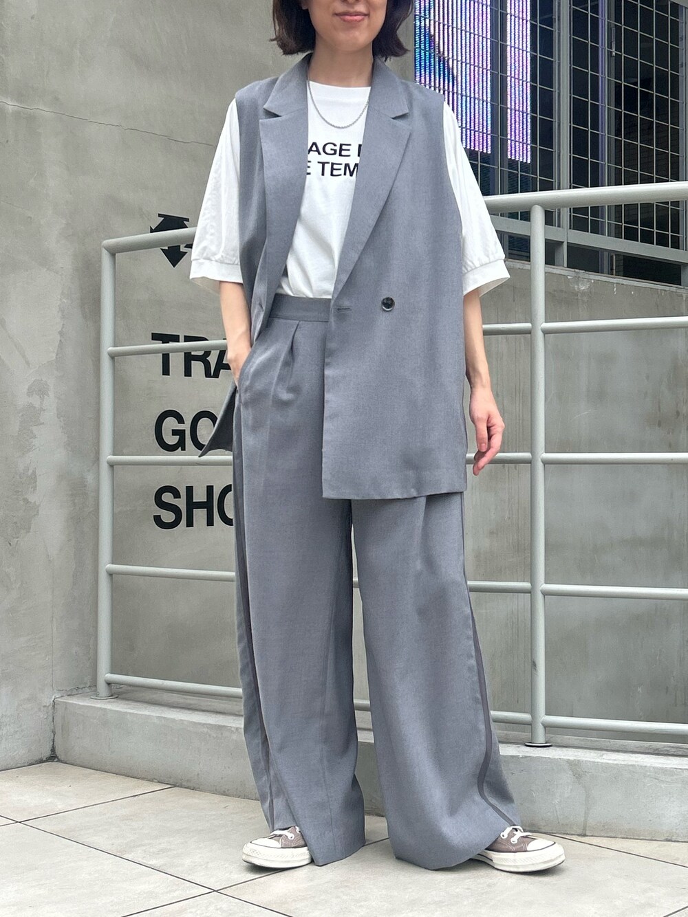 マニッシュなセットアップは ロゴT &スニーカー合わせてカジュアルダウン👟