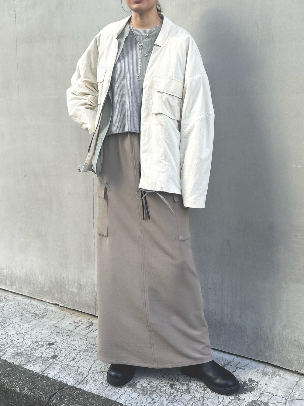 y(Munich)のスカート「【UVカット】【接触冷感】【吸水速乾】【防シワ】ストレッチドビーマキシカーゴスカート」を使ったコーディネート