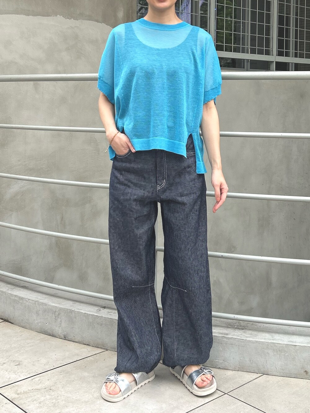y(Munich)のデニムパンツ「リネンコットンクロスバレルパンツ」を使ったコーディネート