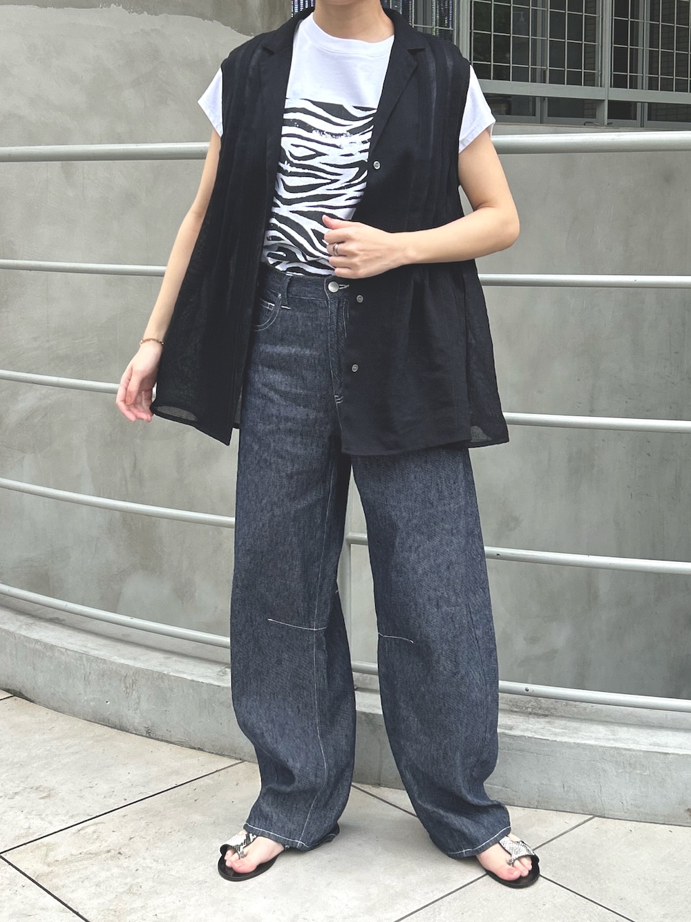 人気のゼブラT🦓 ジレ見えするブラウスを重ねてちょっぴりマニッシュなスタイル🕺