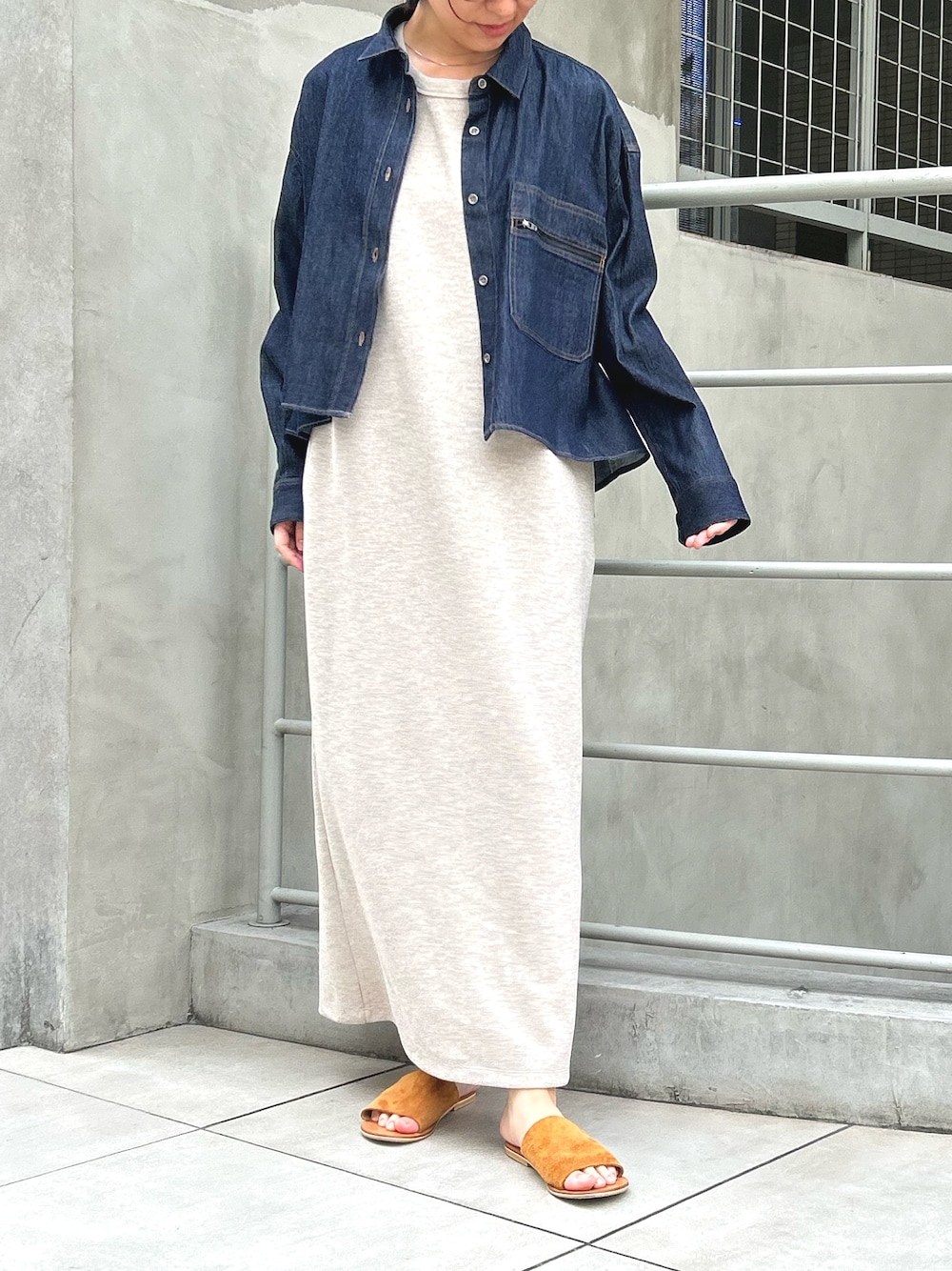 y(Munich)のワンピース「【防シワ】【イージーケア】ダブルフェイスジャージマキシワンピース」を使ったコーディネート