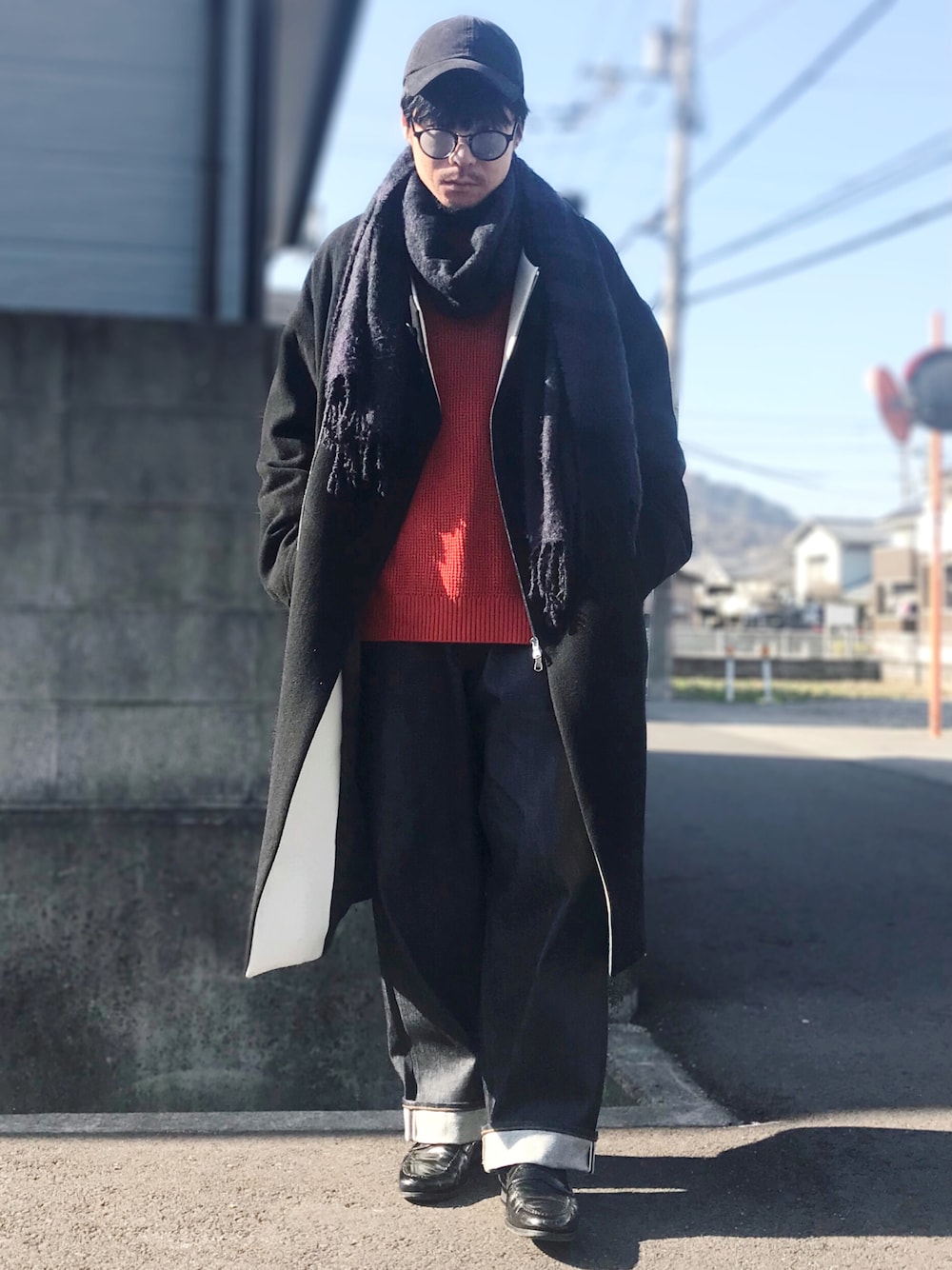 munikunのデニムパンツ「【僕らが纏うモノ】at SAKULA - 5 POCKET SELVEDGE WIDE DENIM/ワイドデニム」を使ったコーディネート
