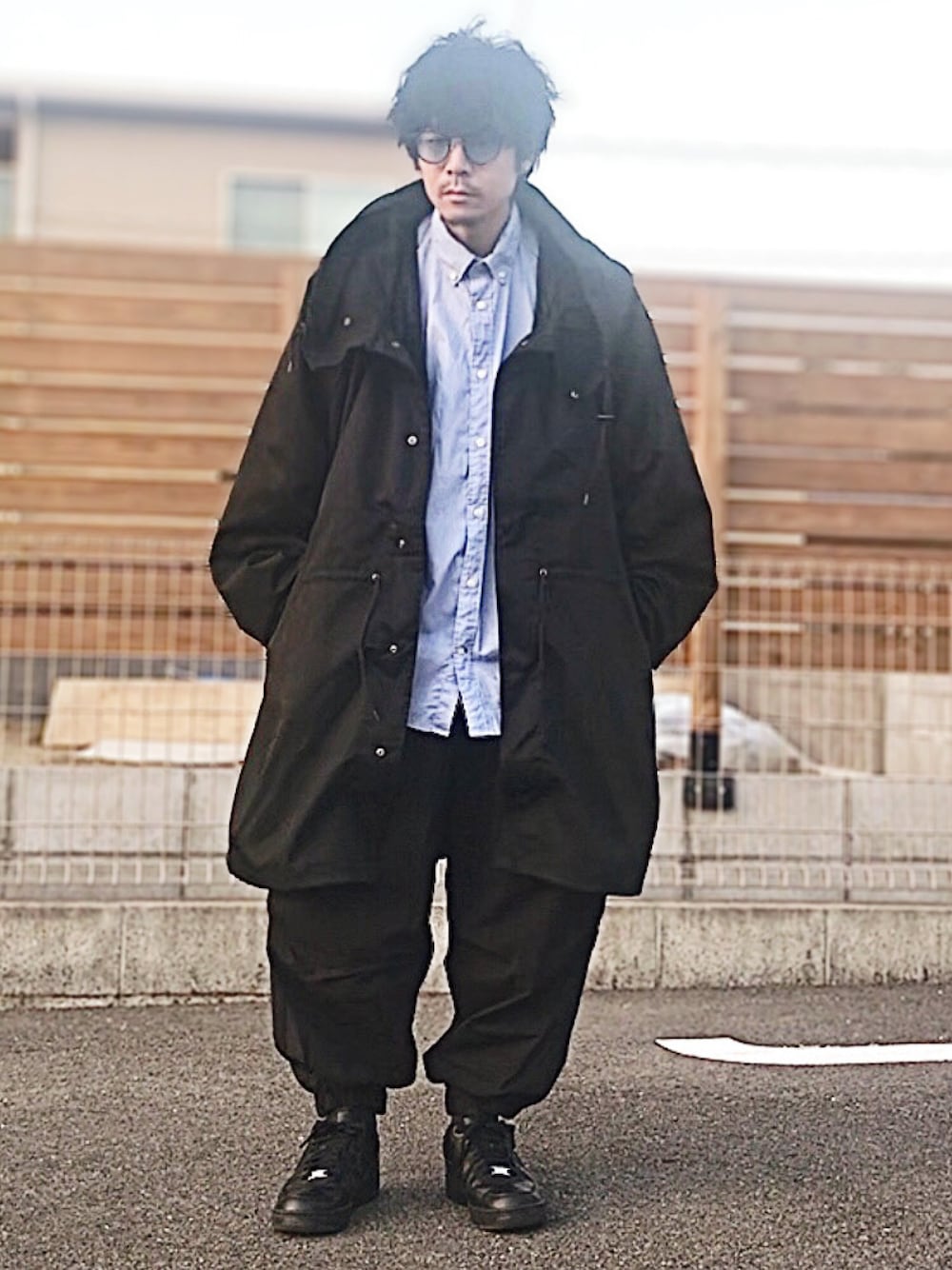 munikunのスニーカー「ナイキ エア フォース 1 '07 メンズシューズ / Nike Air Force 1 '07 Men's Shoes CW2288-001 Black」を使ったコーディネート