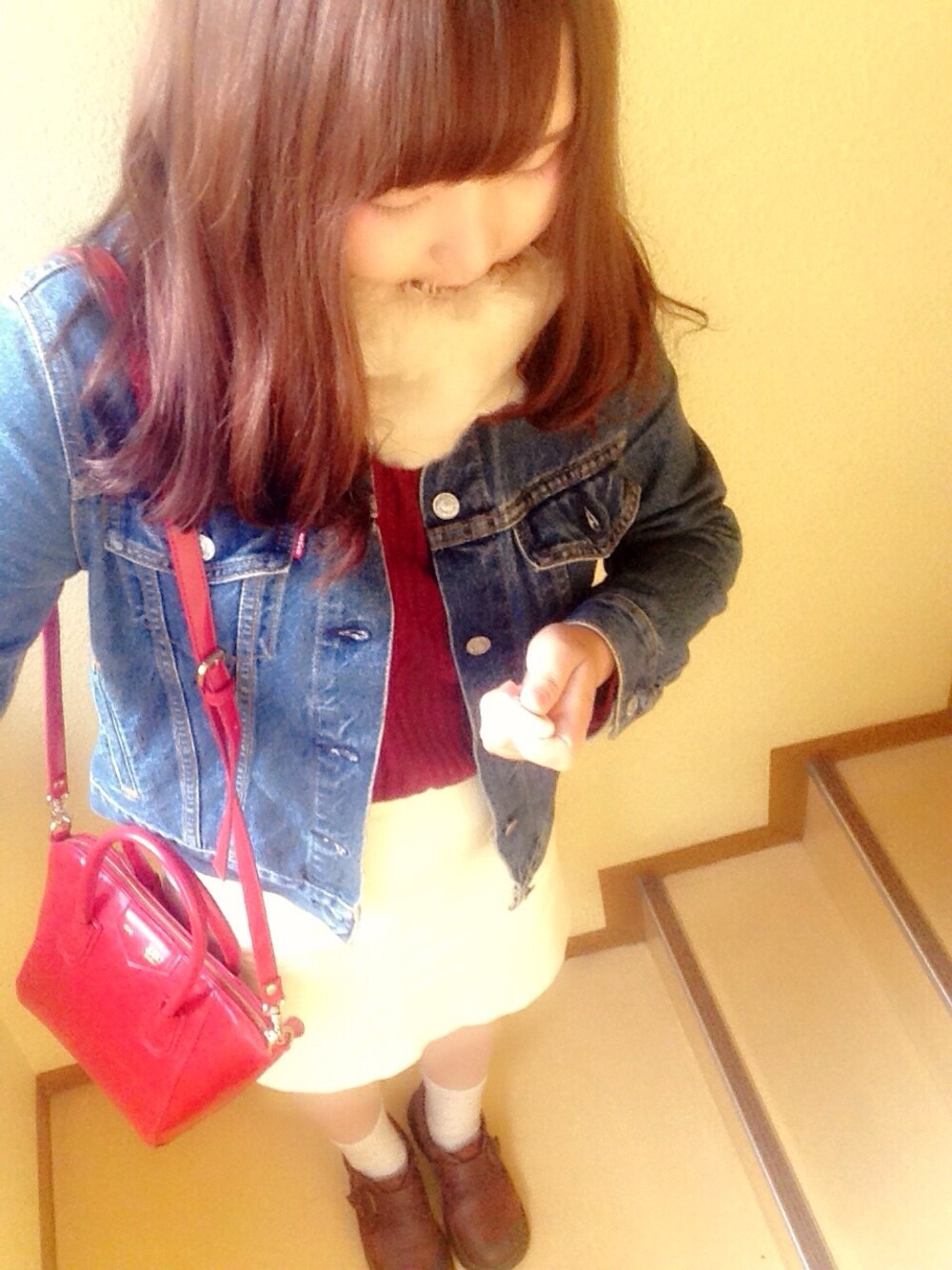今日はひさしぶりに姉とご飯です😳💓 姉に会う前にマツエクするので リップと眉毛とチークのみです 靴はDr.Martin アウターはLEVI'Sです