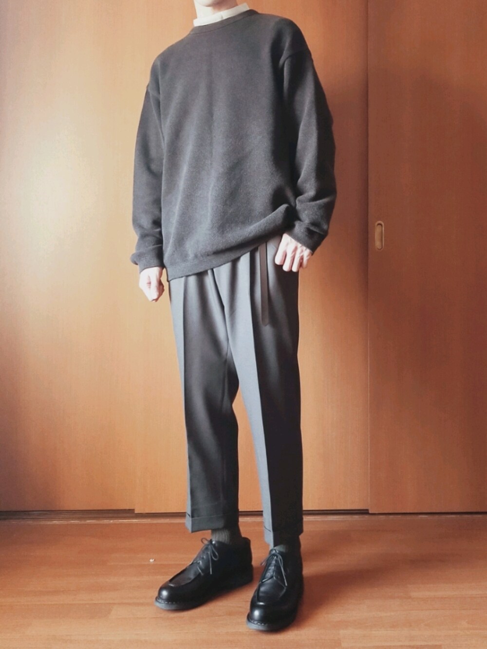 服沼にハマった原因のcrepuscule しっかりしてて長く使えます パンツは売れ残ってた去年のユニクロUのスラックスをダブルにしました