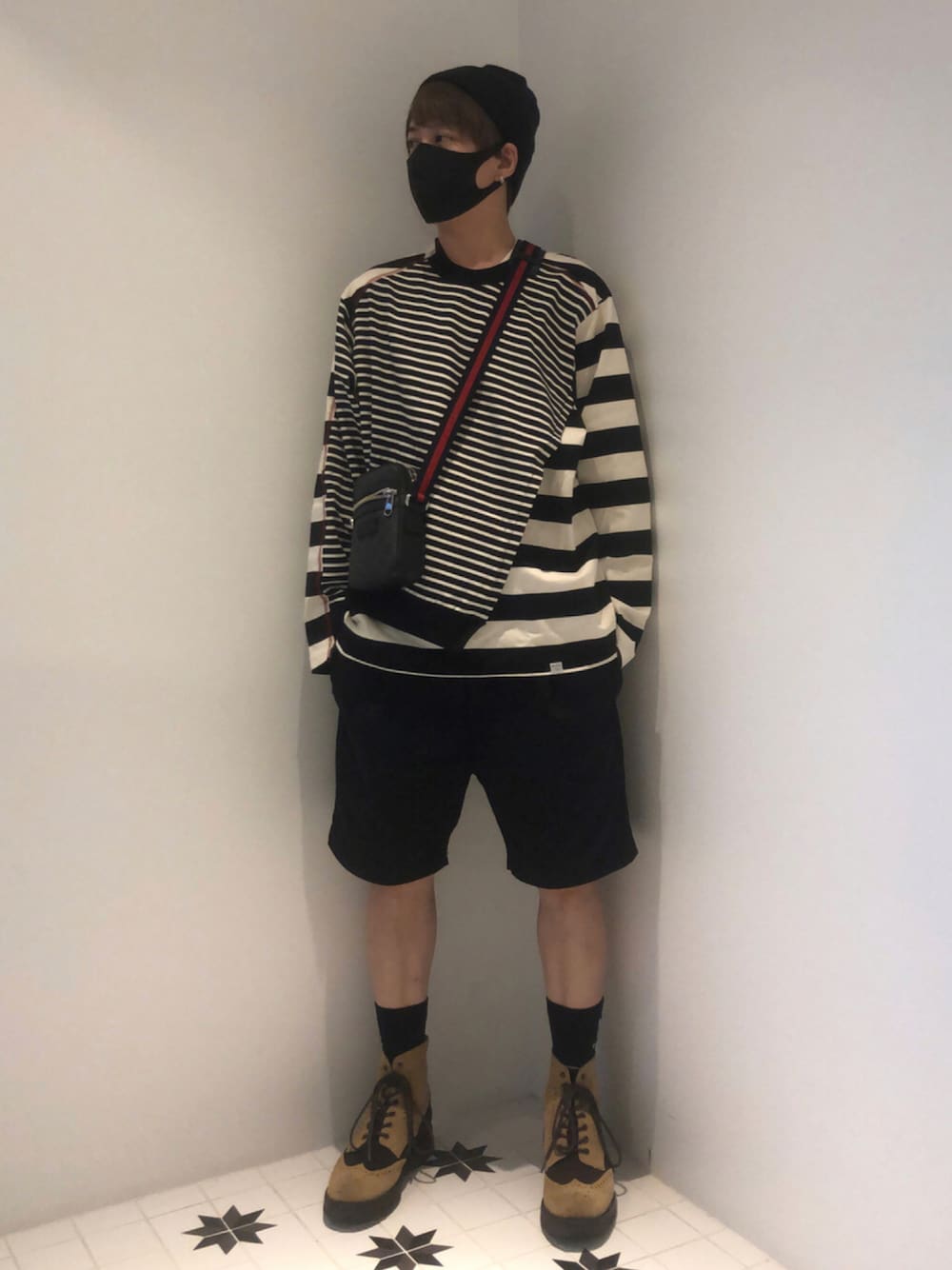 ⭐︎WEAR生活1337日目⭐︎ tops:kolor BEACON bottom:used shoes:CAMINANDO cap:no brand bag:GUCCI ☁️17/23℃ 久々の投稿。 すっかり秋です。 髪が赤くなくなったので着たくてもなかなか着れなかった服達を解禁です。 ただ今日劇場に行ったら、 ボーダーTシャツを衣装にしているパワー系トリオ「さんさんず」がいて、 ボクまでさんさんずの一味みたいになってて辛かったです。
