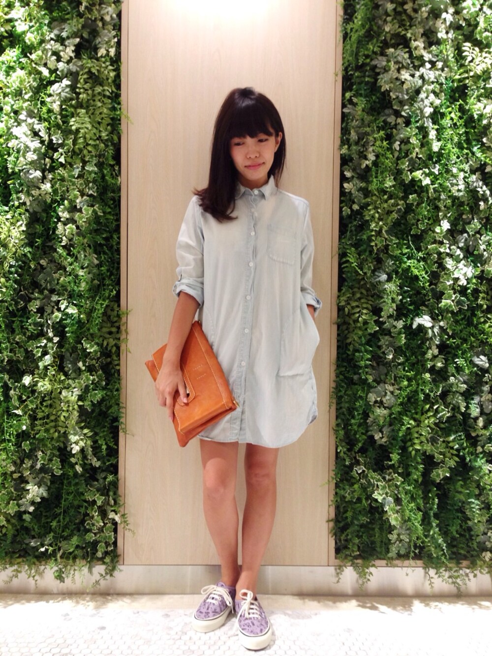 のん(Rinajour横浜)のワンピース/ドレス「インディゴシャンブレーOP」を使ったコーディネート