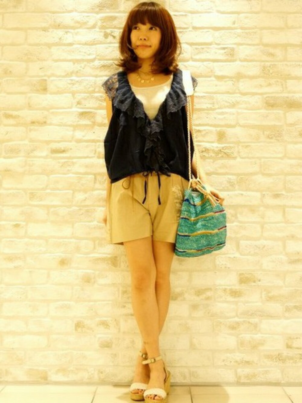 スッキリしたショーツには可愛らしいトップスがぴったり♪