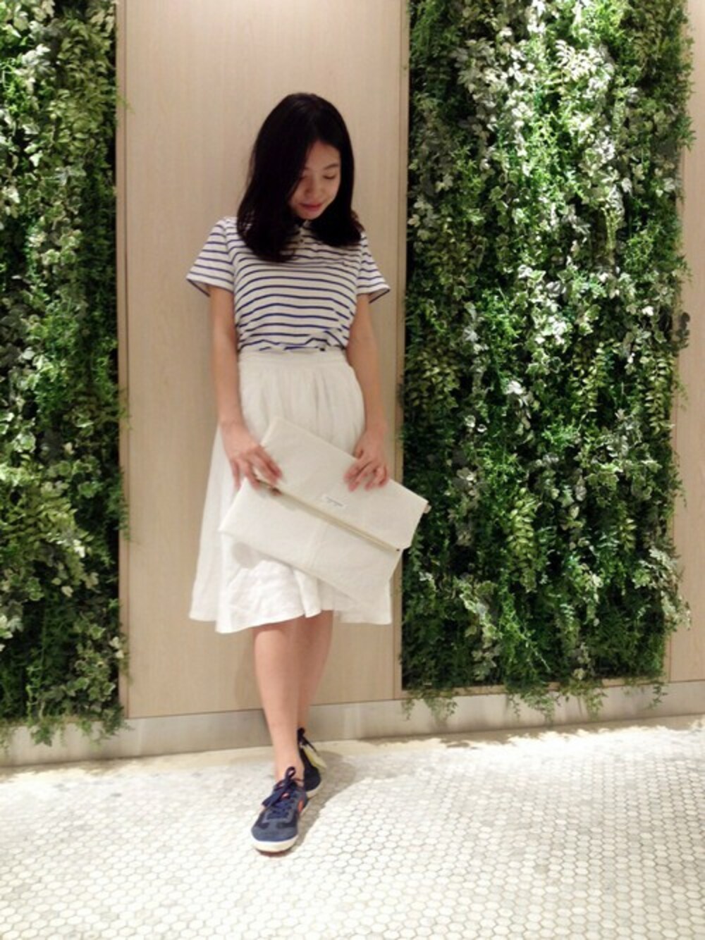 ホワイトとネイビーだけを使ったシンプルスポーツMIXコーデ‼︎