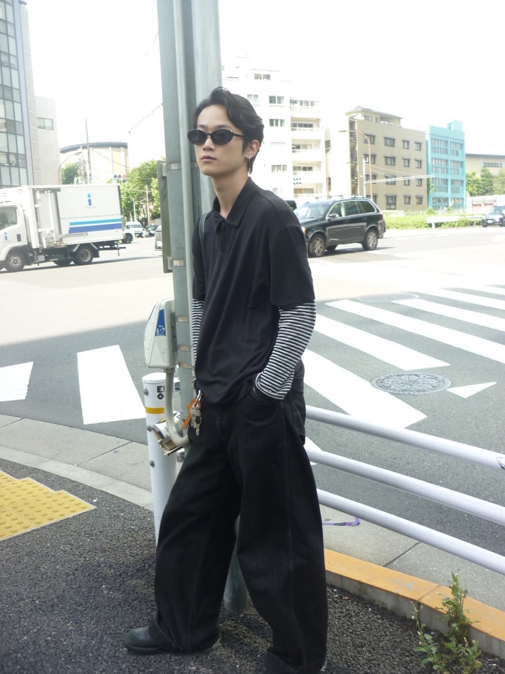 オールブラックのコーデをベースにインナーにカラーを入れてあげると小洒落感出てオススメ! 特におすすめのカラーは、ブラックがベースなので蛍光などの原色より、マッドな色味のアイテムにしてあげるとまとまり感アップ⤴️