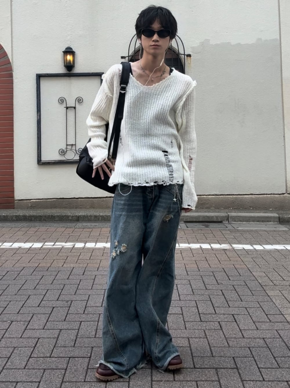 首広くて薄手のニットなら今の時期でも行ける🔥 このくらい緩いアイテムにパンツや靴で漢感を出してあげると、大人ラフを作れるので是非参考にしてみてね!
