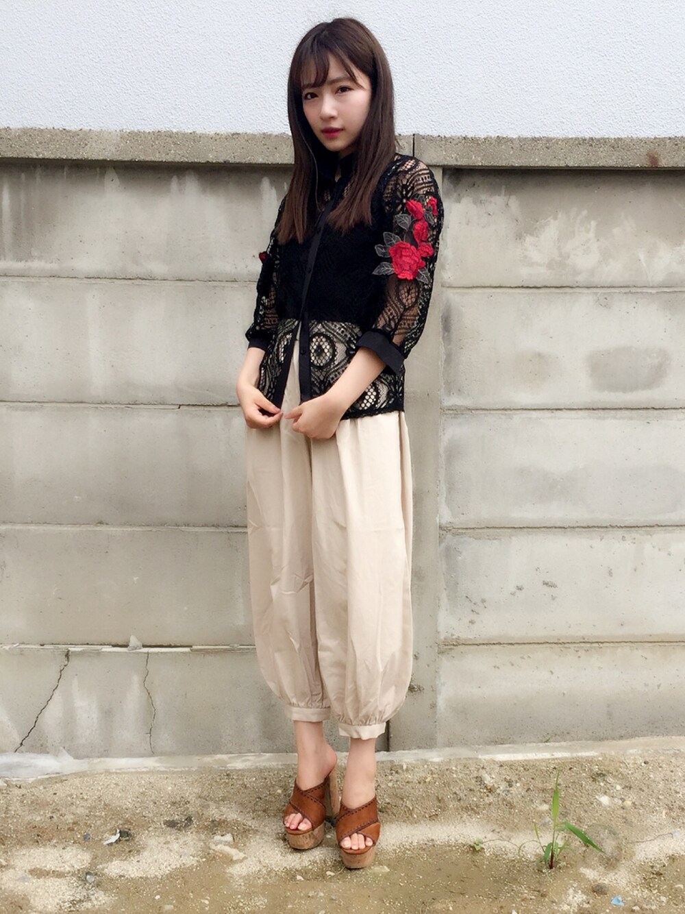 ウォッチありがとうございます✨ 私服👗✨ 今日は赤刺繍のレーストップス🌹♡ 黒と赤と組み合わせに レースの生地がドレッシーな雰囲気に✨ パンツと靴で カジュアルさを入れて、 コーディネートの雰囲気を柔らかく(^-^)
