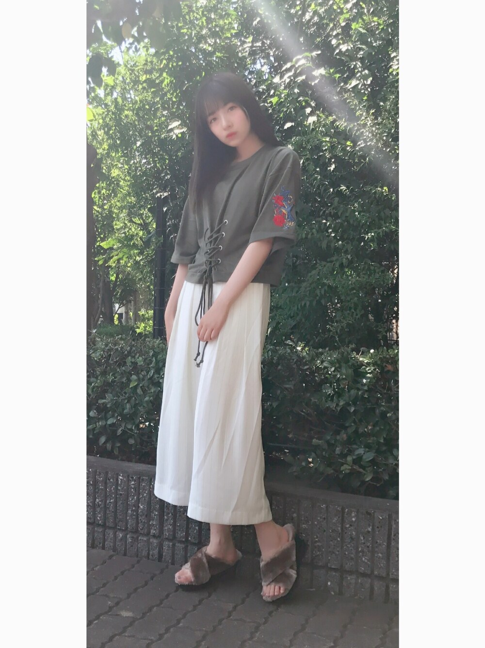 村瀬紗英のTシャツ/カットソー「袖刺繍コルセットプルオーバー」を使ったコーディネート