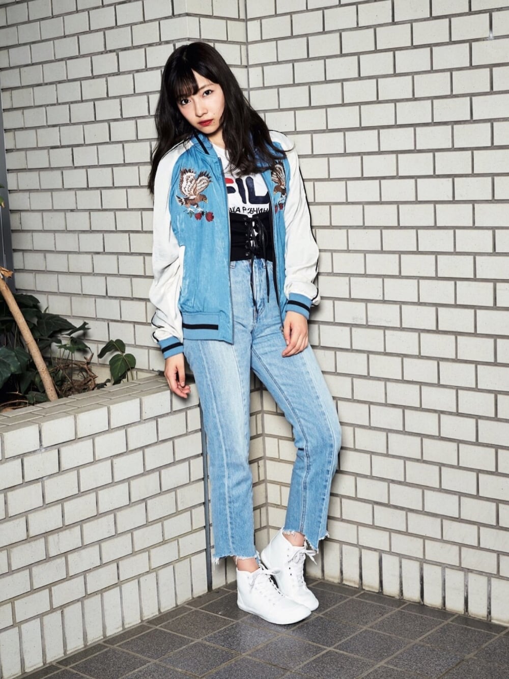 村瀬紗英のブルゾン「イーグルスカジャン」を使ったコーディネート