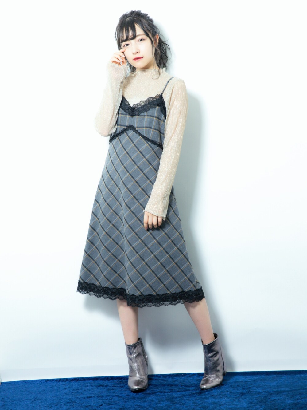 ウォッチありがとうございます😊 私服👗✨ チェックのレースワンピの シックなコーディネート^ - ^ シースルーのラメトップスは ゴールドで 相性も良き☺️🌹🌹