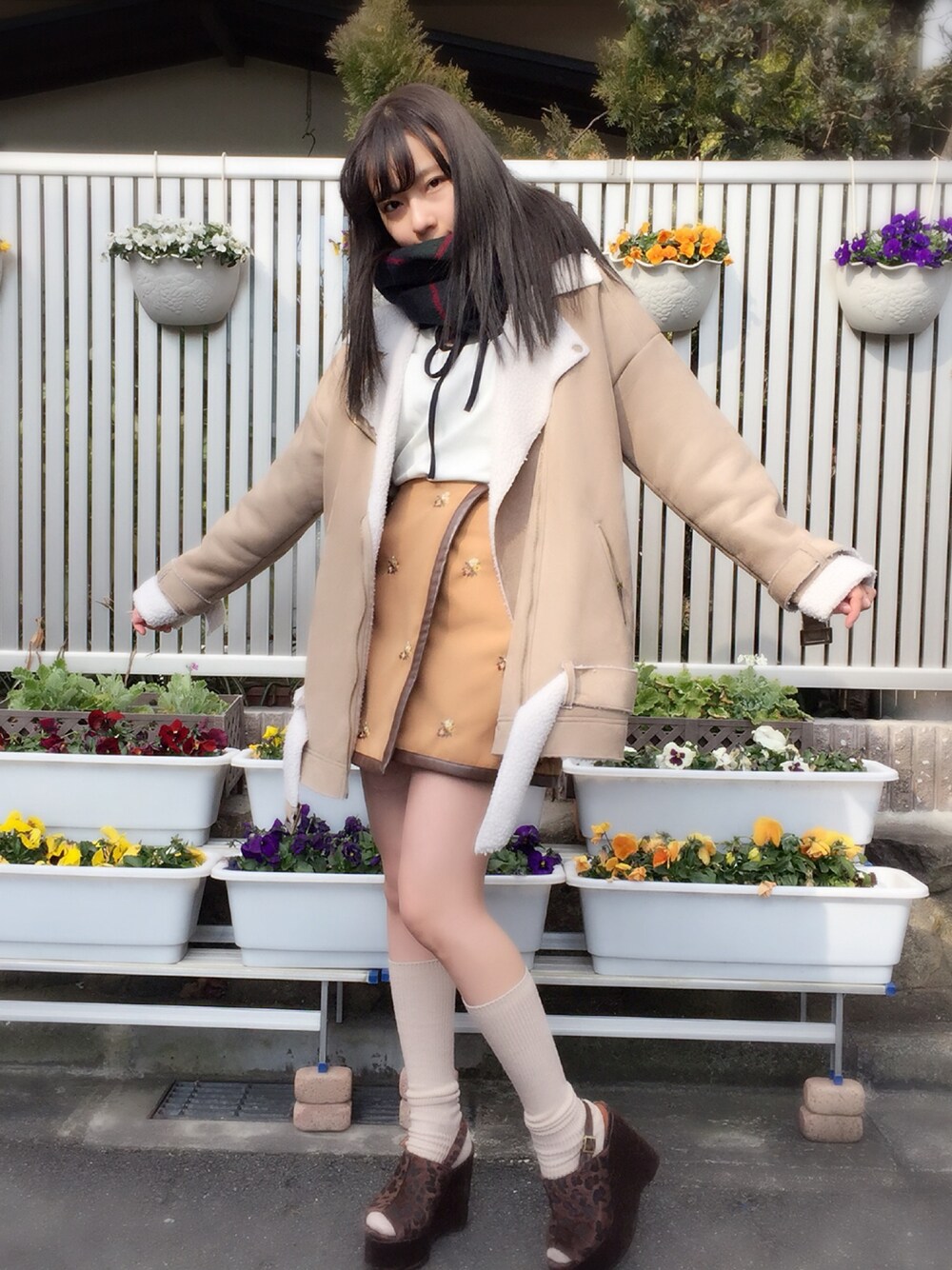 村瀬紗英のジャケット/アウター「フェイクムートンライダース」を使ったコーディネート