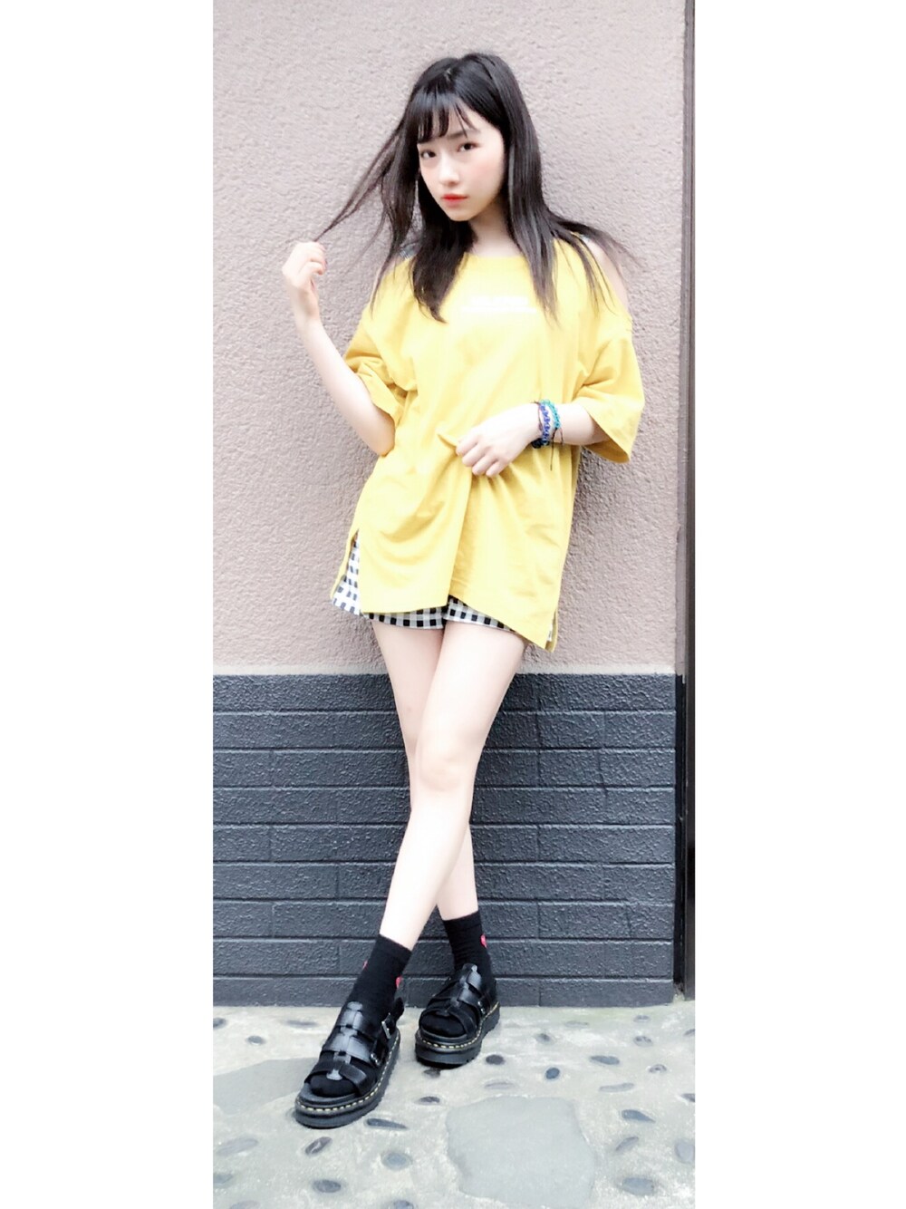 ウォッチありがとうございます😊 私服👗✨ milkfed.の肩空きトップス♡ 丈が長めだったので、 ギンガムショーパンがチラリ^ - ^ 靴下はお気に入りのハート付き^_^ 白と黒二色買いしました🤔❤️🖤
