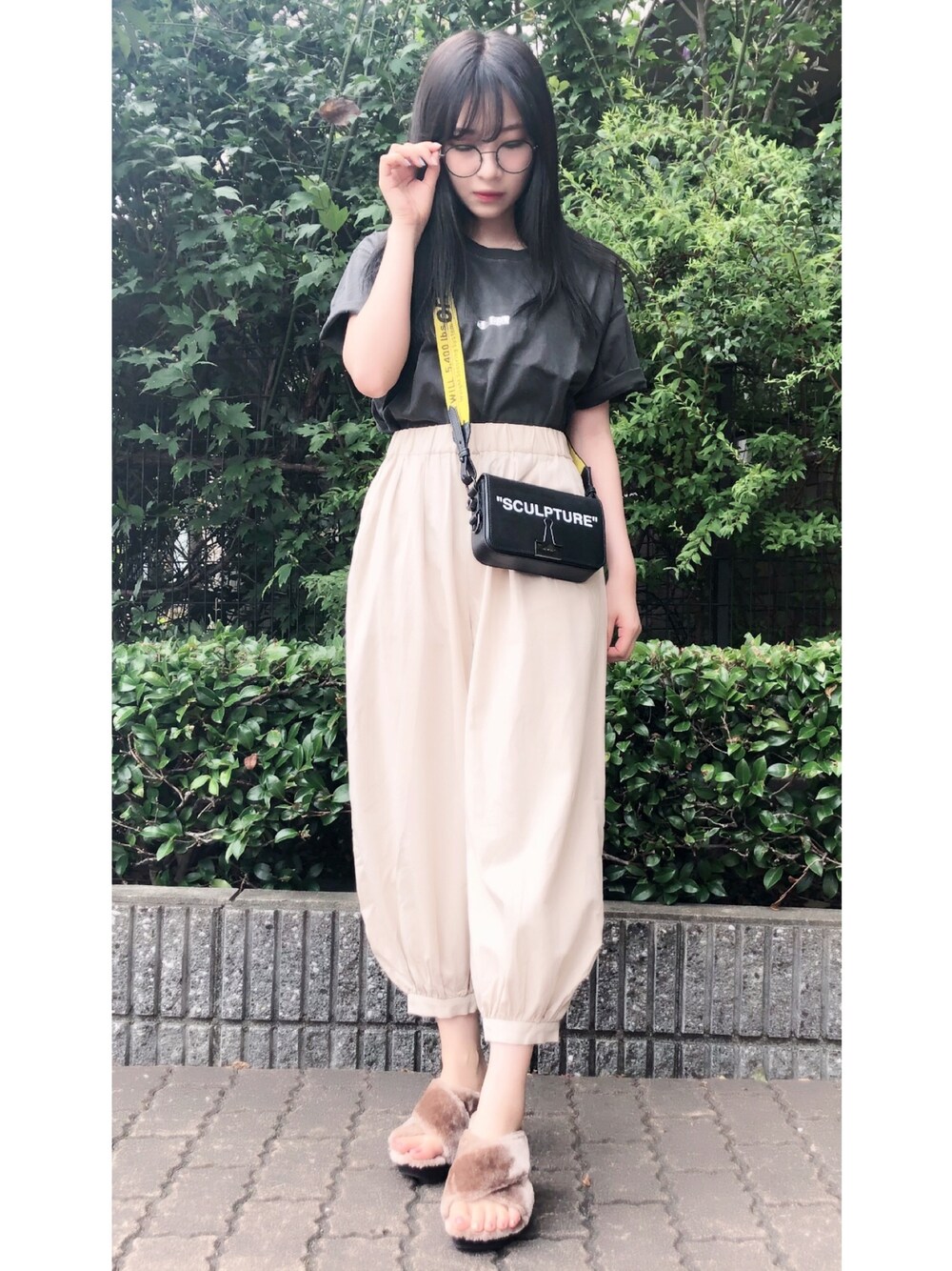 ウォッチありがとうございます😊 私服👗✨ Tシャツのカジュアルコーデ(^^) 色を暗めでまとめている分、 ファーサンダルや 小物でアクセントを^_^💗