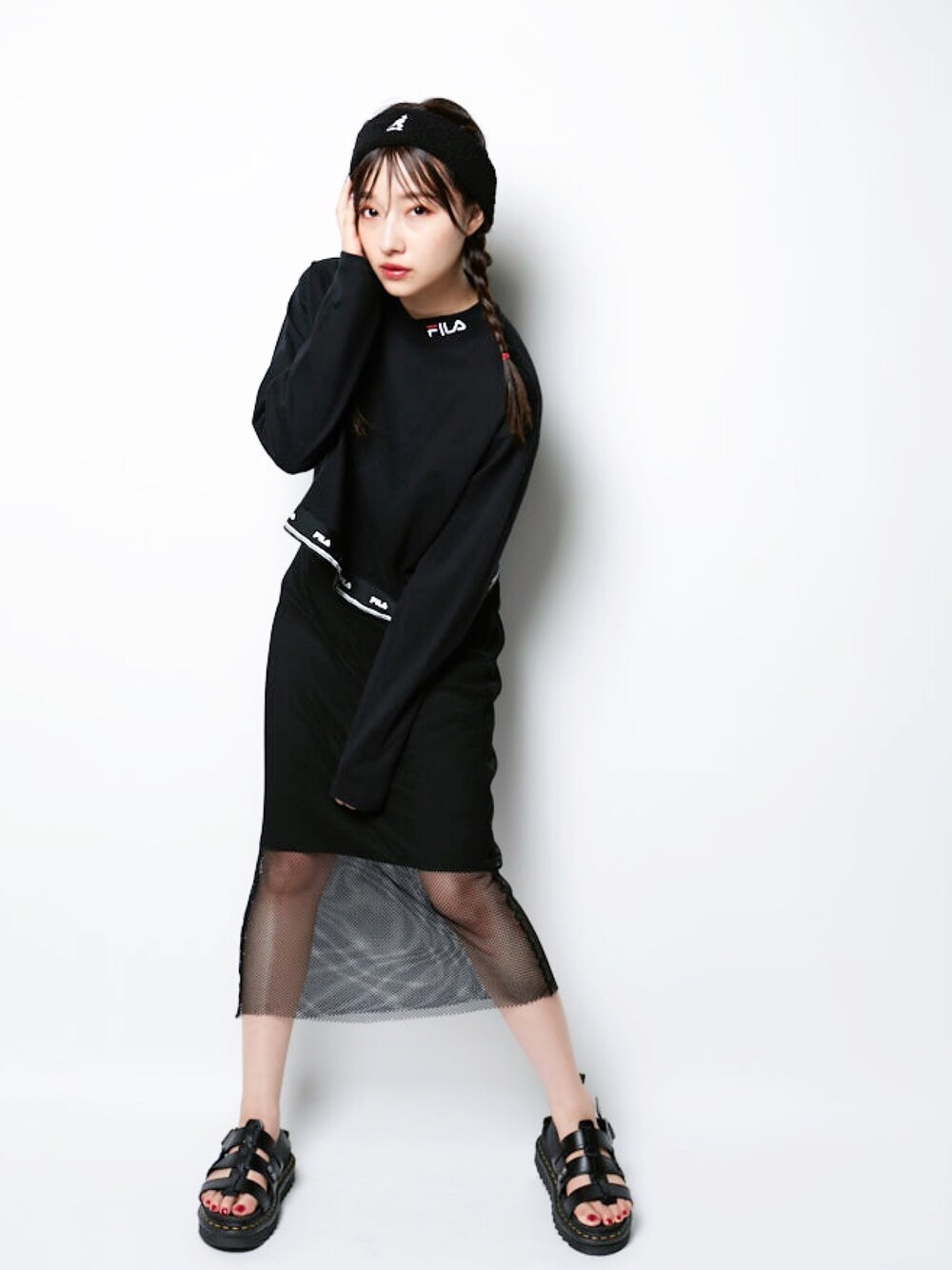 村瀬紗英のTシャツ/カットソー「【EMODA×FILA】HEM TAPE ロンT」を使ったコーディネート