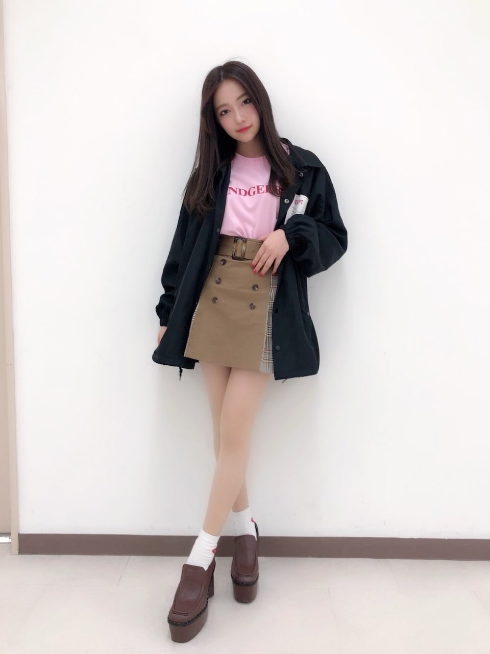 ウォッチありがとうございます😊 私服👗✨ ANDGEEBEEコーデ^_^ 再入荷予定のコーチジャケット💜 ろんTのピンクと合わせました😊💕