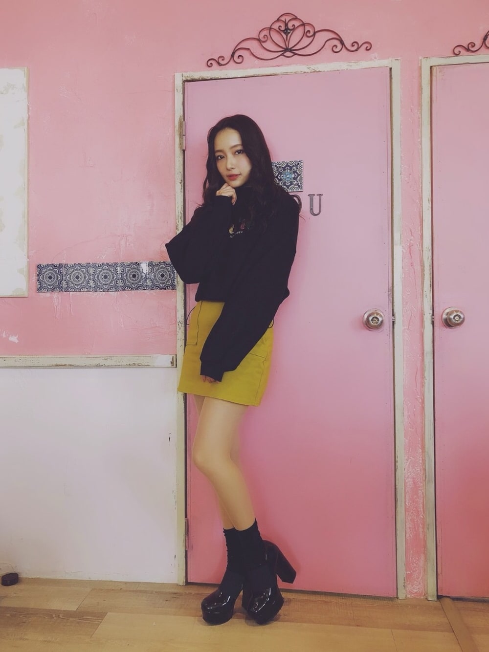 ウォッチありがとうございます😊 私服👗✨ ANDGEEBEEハイネック ミニ丈スウェット💜! タイトミニと合わせて 辛口カジュアルなコーデ^_^