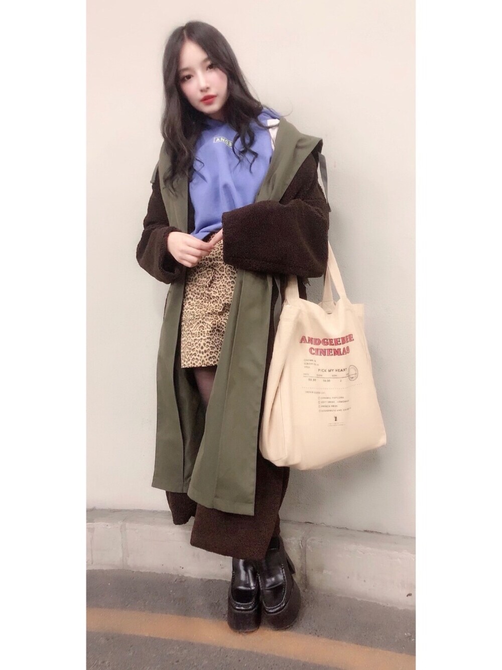 ウォッチありがとうございます😊 私服👗✨ 紫の袖切り替えネオンパーカー💜💚 ヒョウ柄スカートとの相性も バッチリです^ - ^