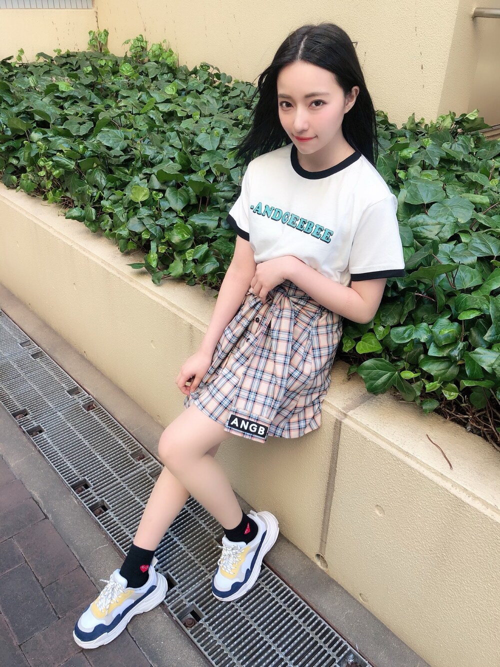 ウォッチありがとうございます😊 私服👗✨ リンガーT😊💕 チェックの巻きスカートとも 相性バッチリです^ ^ スニーカーと合わせた カジュアルなスタイルに^ ^