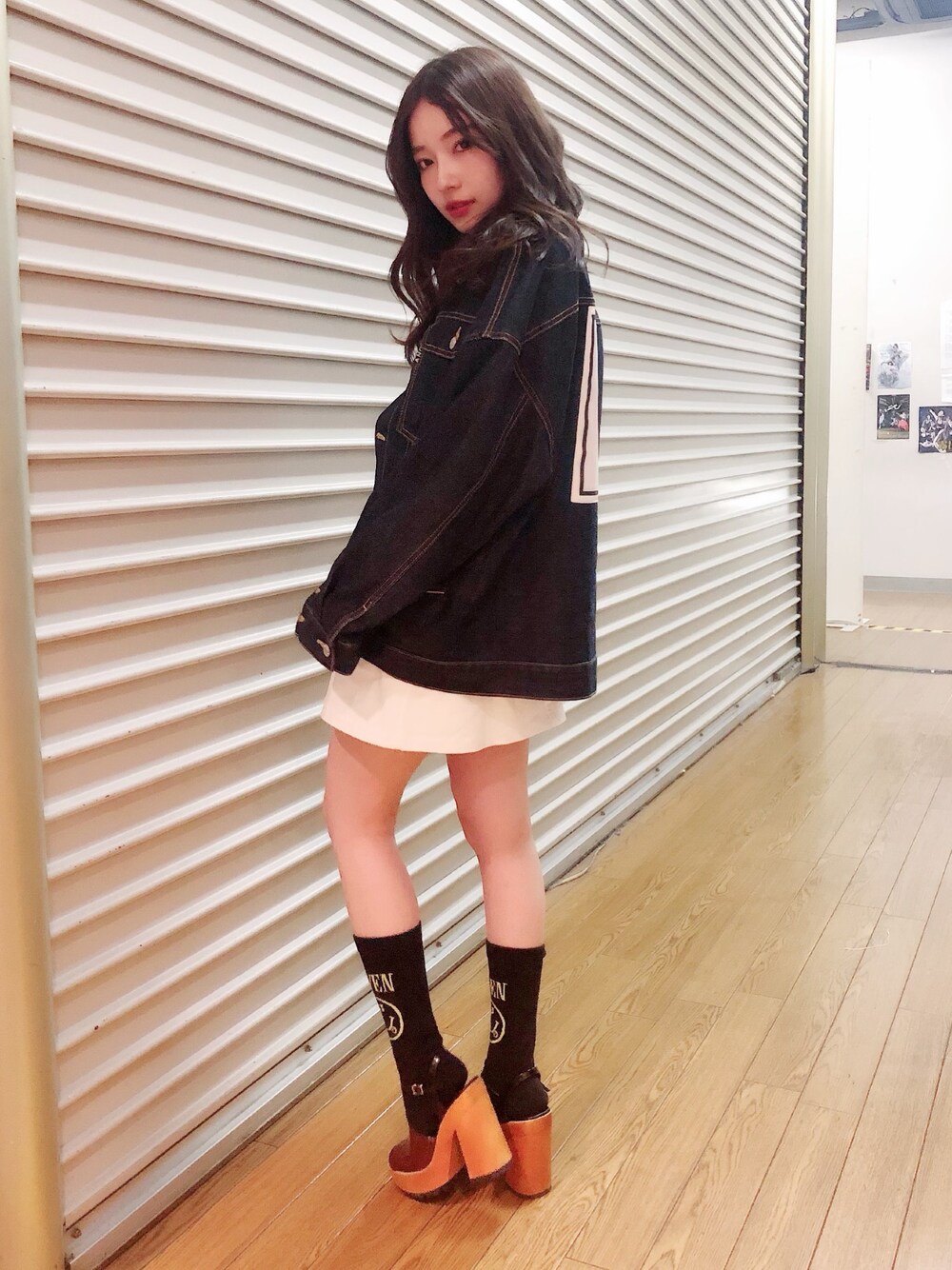 ウォッチありがとうございます😊 私服👗✨ ラフなデニムジャケットは ミニ丈のスカートとの相性バッチリ^ ^ にこちゃんの靴下も お気に入りです...😳❣️❣️