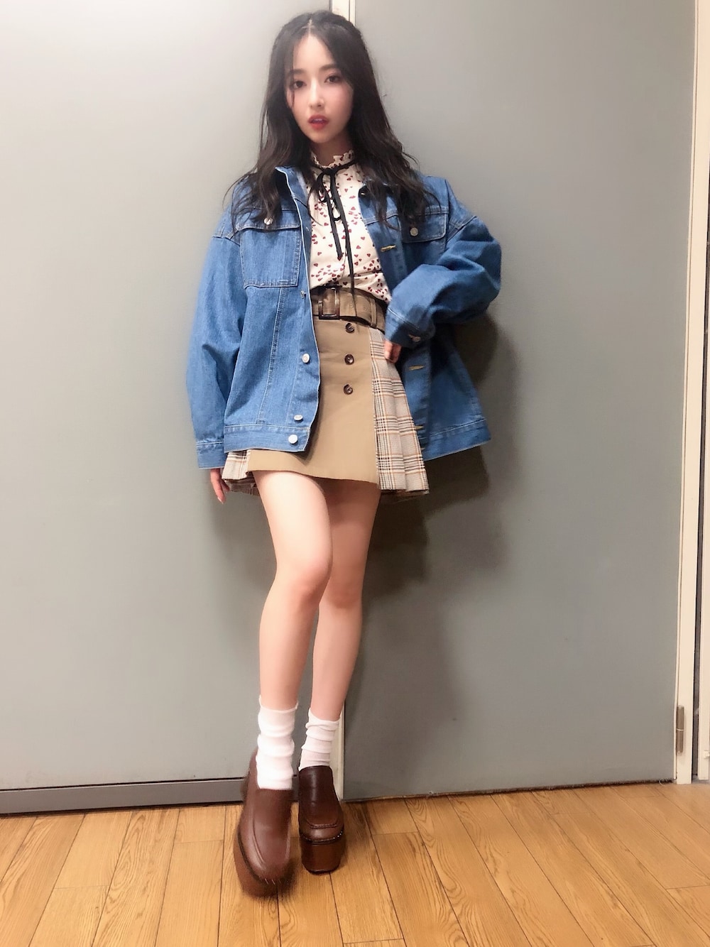 村瀬紗英のデニムジャケット「オーバーサイズバックロゴデニムジャケット」を使ったコーディネート