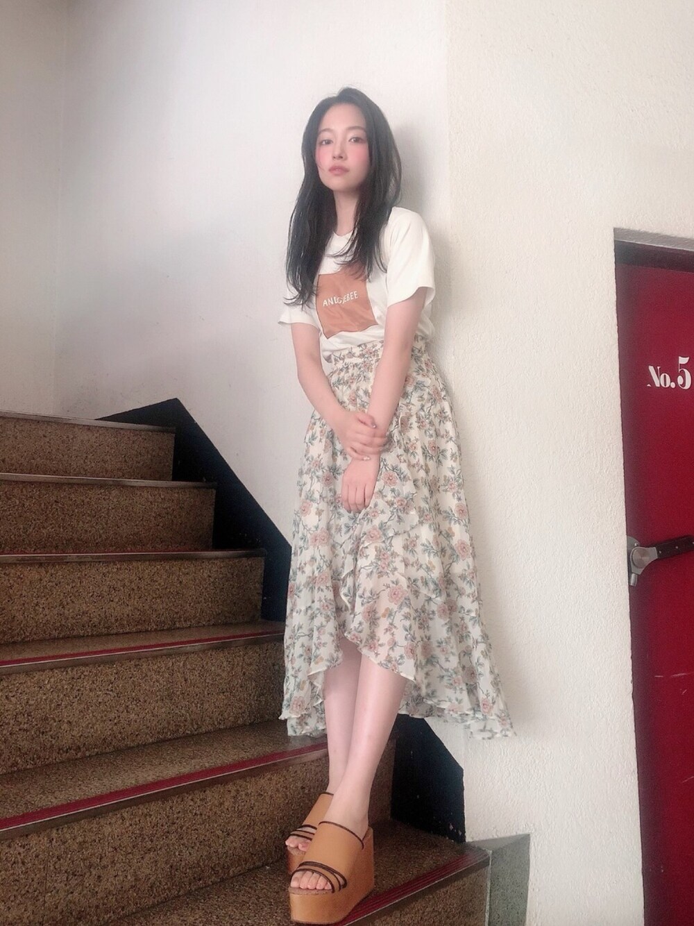 ウォッチありがとうございます😊 私服👗✨ ボックスロゴTシャツ^ - ^ 花柄スカートは 透け感があって夏らしい印象に☺️