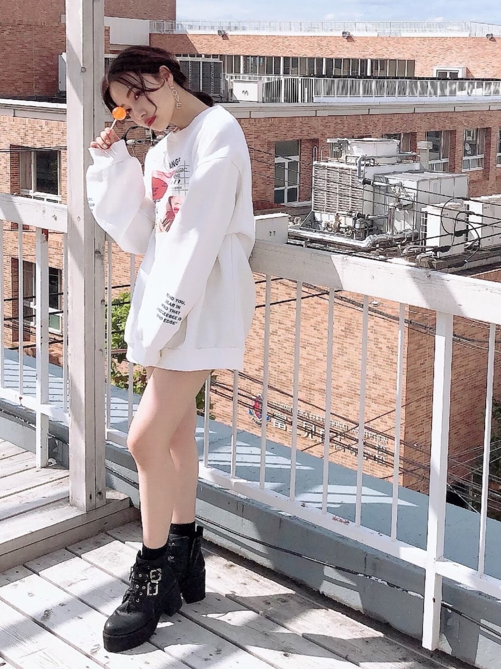ウォッチありがとうございます😊 私服👗✨ スウェットコーデ^ ^💗 袖のロゴもポイントになってて可愛い^ ^
