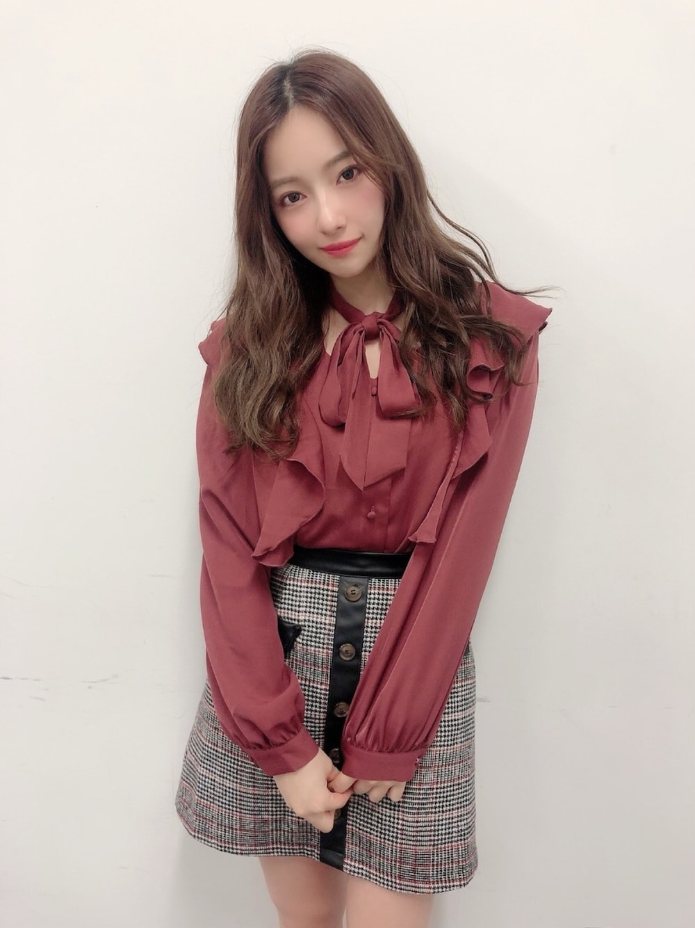 ウォッチありがとうございます😊 私服👗✨ ボルドーのブラウス☺️ 色味が秋冬っぽくて 印象に残る色^ ^❤️
