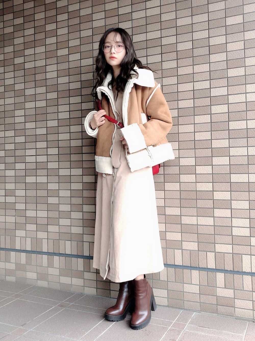 村瀬紗英のその他アウター「フェイクムートンジャケット」を使ったコーディネート