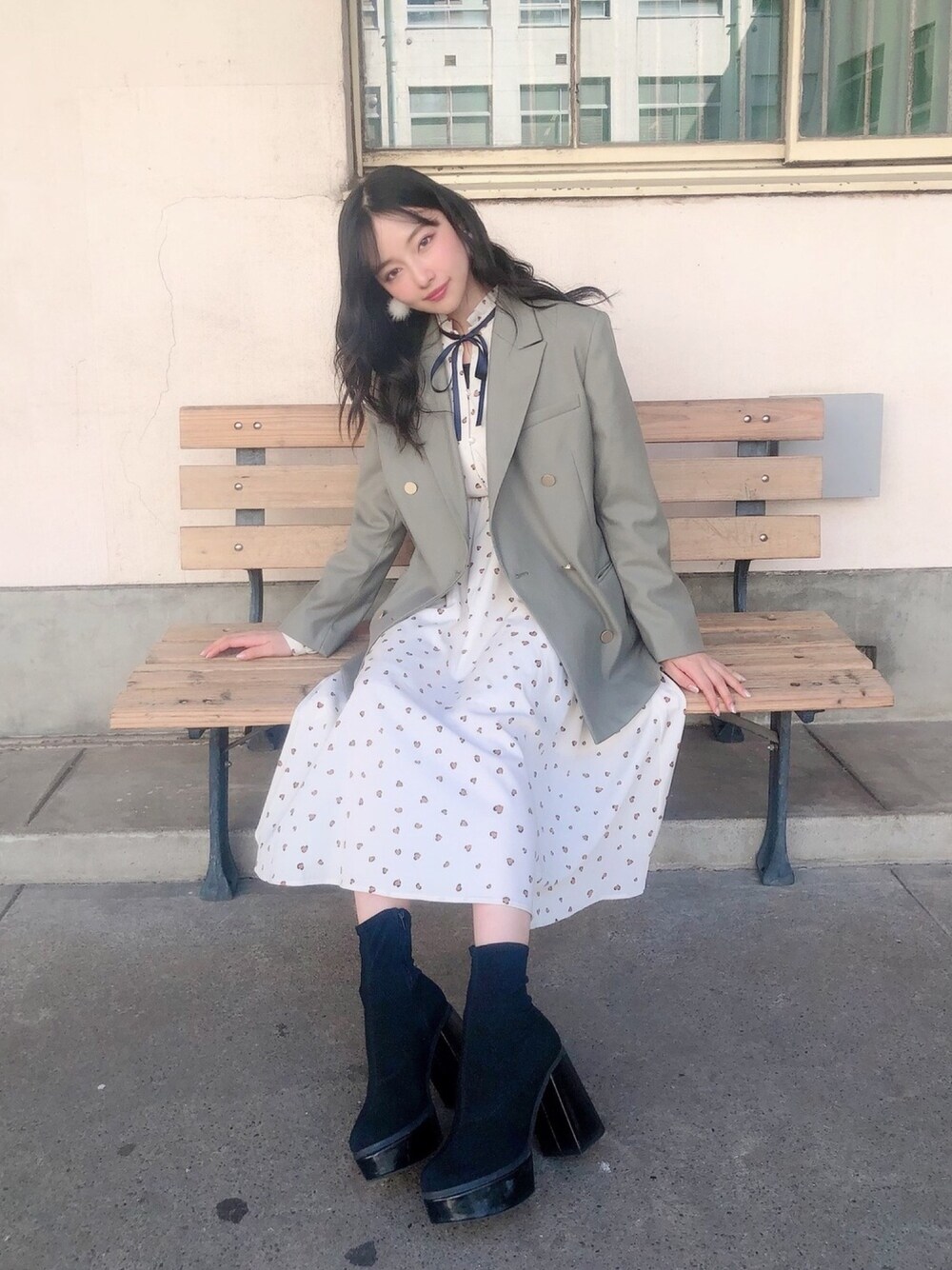 ウォッチありがとうございます😊 私服👗✨ ジャケットコーデ^ ^ 今、この色が大好きです🌼 アイボリーとの相性が良くって この日はワンピと合わせました!