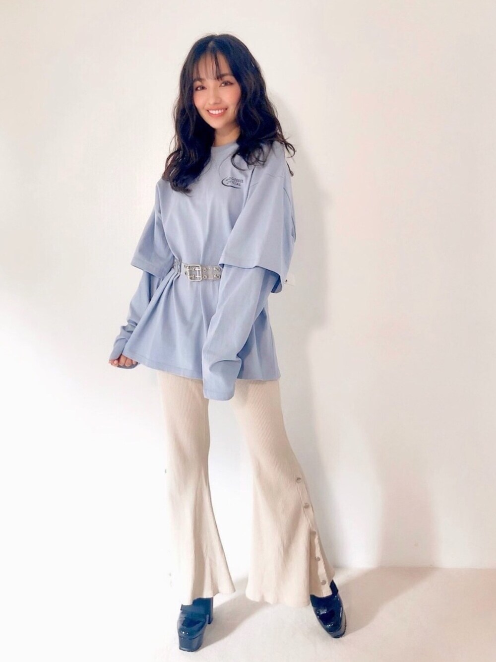 村瀬紗英のTシャツ/カットソー「【UNISEX】レイヤードスリーブロゴロンT」を使ったコーディネート