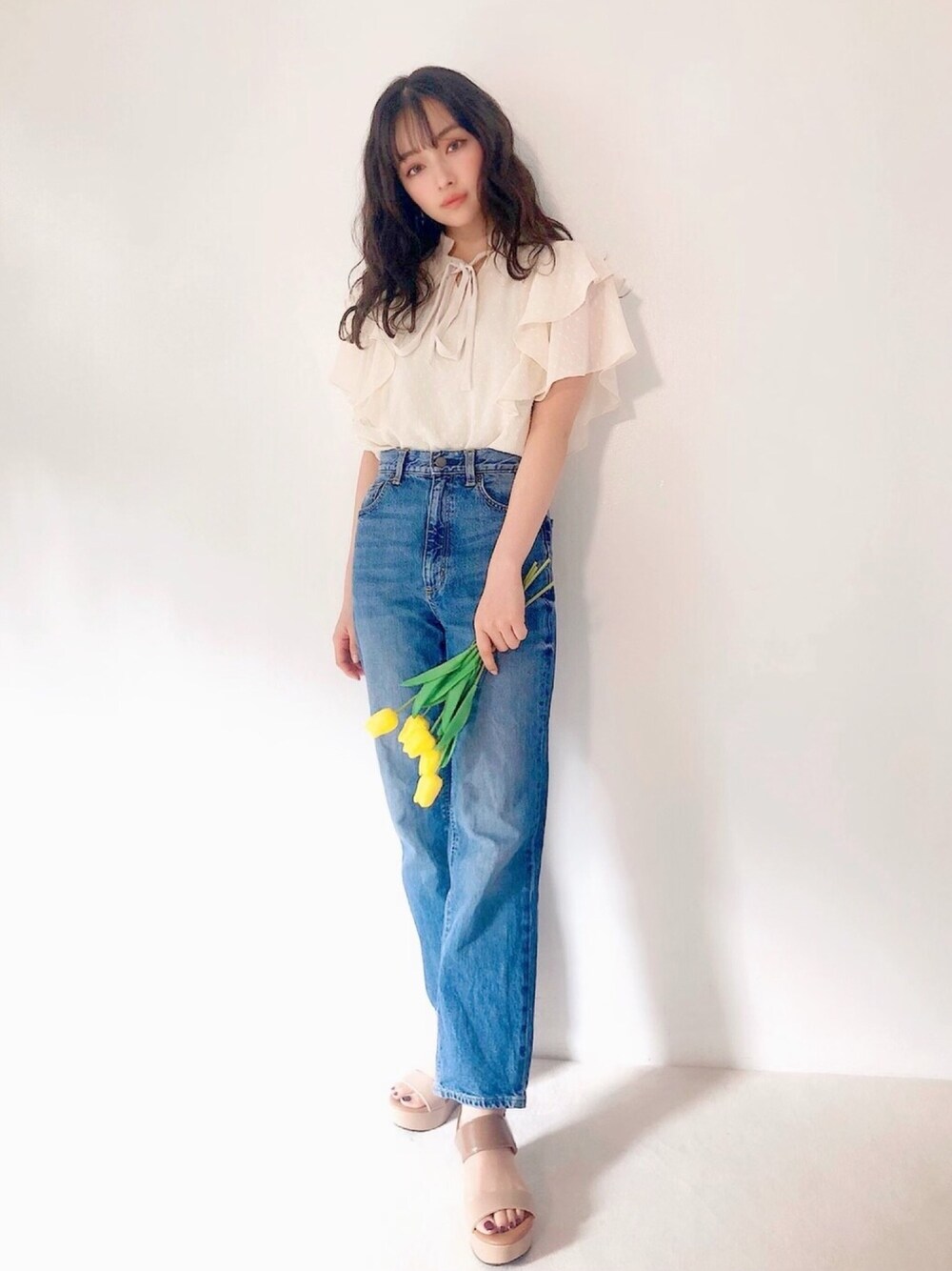 村瀬紗英のシャツ/ブラウス「ドビーシフォンブラウス」を使ったコーディネート