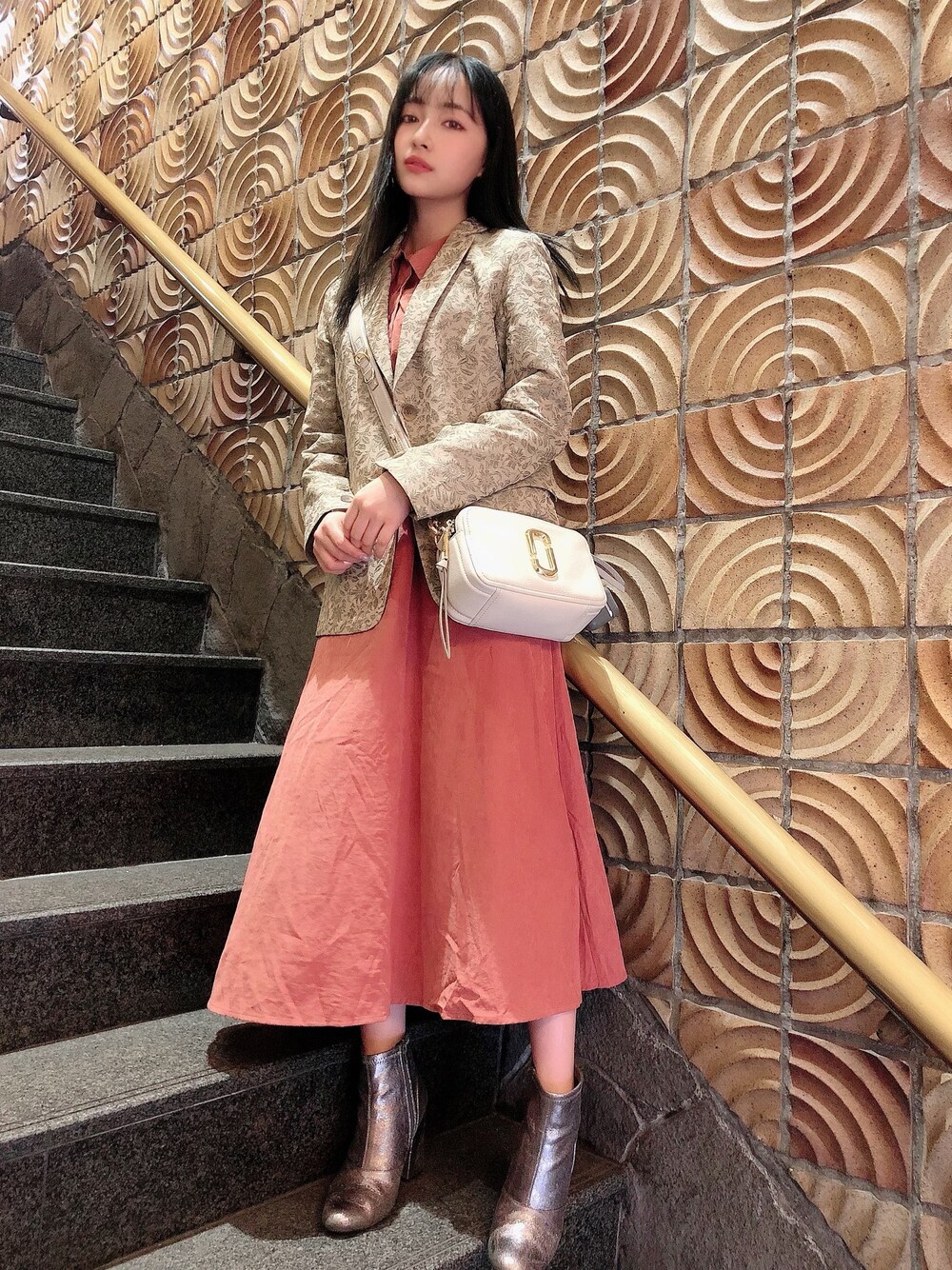 ウォッチありがとうございます😊 私服👗✨ 懐かしいワンピース^ ^ この色が好きです...❣️ ジャケットコーデ最近好きで このジャケットもお気に入り🧥