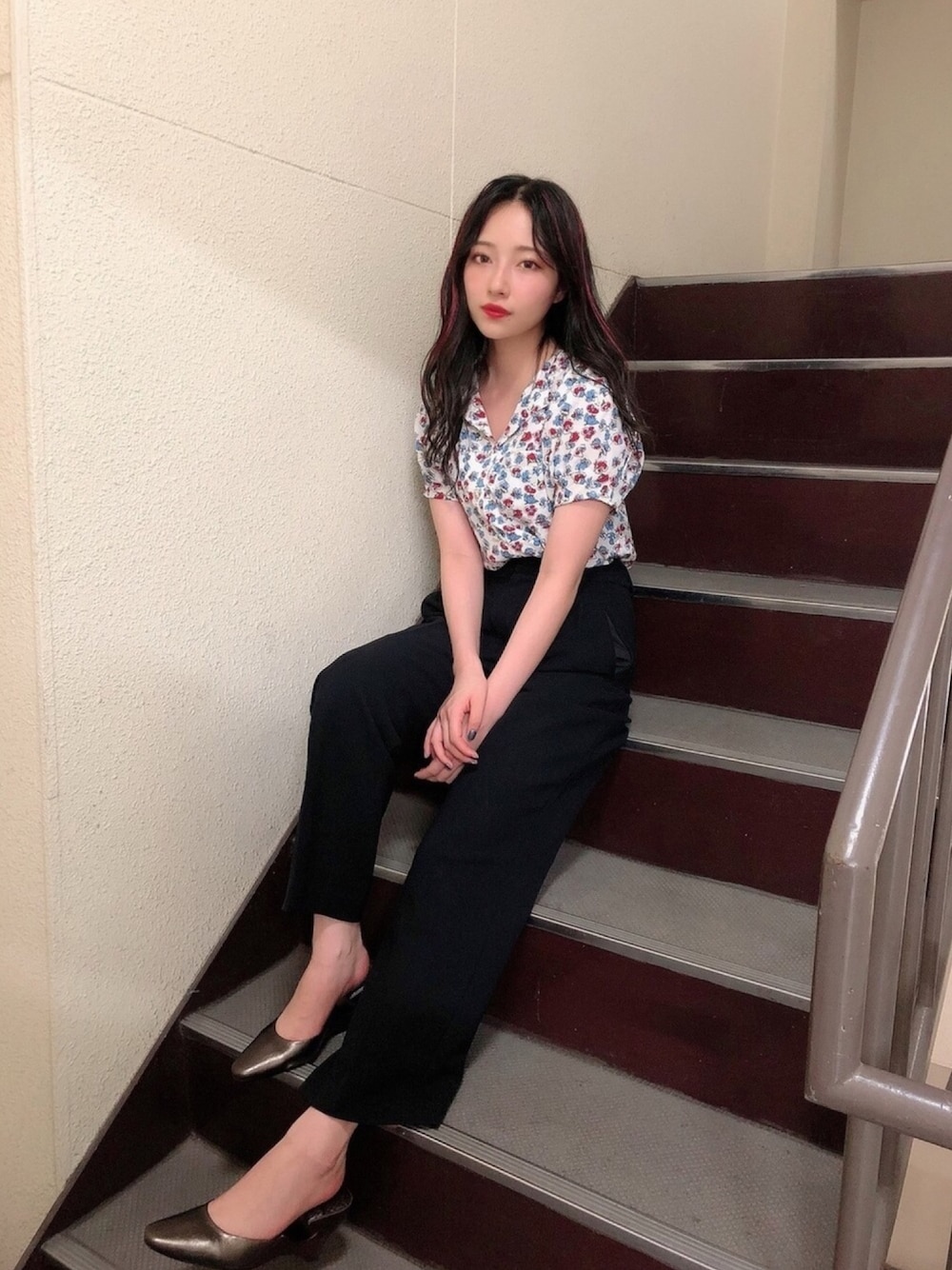 ウォッチありがとうございます😊 私服👗✨ 花柄トップス^ ^ 開襟シャツで ガーリーから大人パンツにも 合わせられるから よく着回ししています🥰